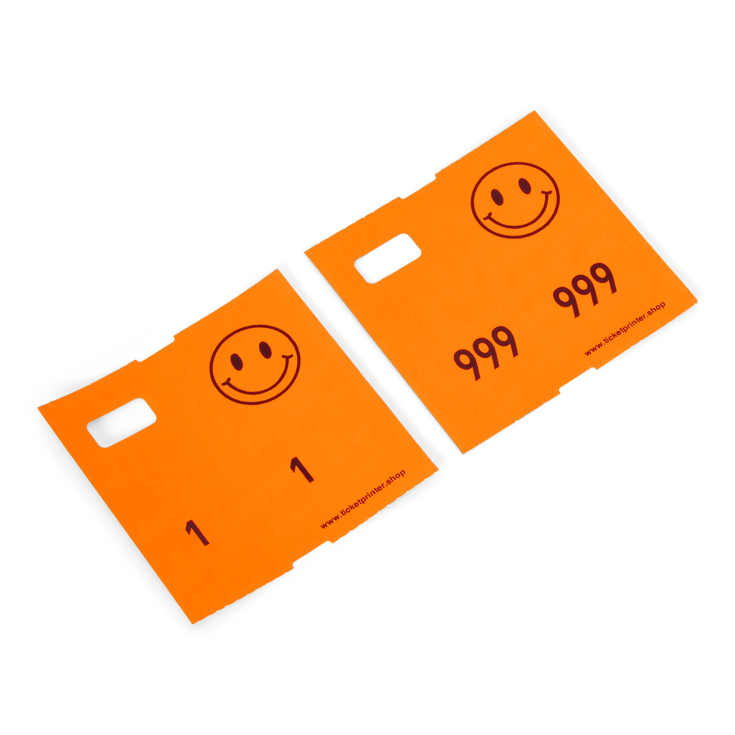 Pre-printed paper cloakroom tags, NEON RED/ORANGE. Replace your plastic cloakroom tags by these high quality pre-printed cloakroom tickets. Value pack containing 1000 tickets. Easy solution for events. Use the numbered sequences to check your turnover. Need tickets more frequently? Have a look at our CoatCheck Ticketprinter, a great solution to print your own tickets - up to 50% cheaper than pre-printed tags.