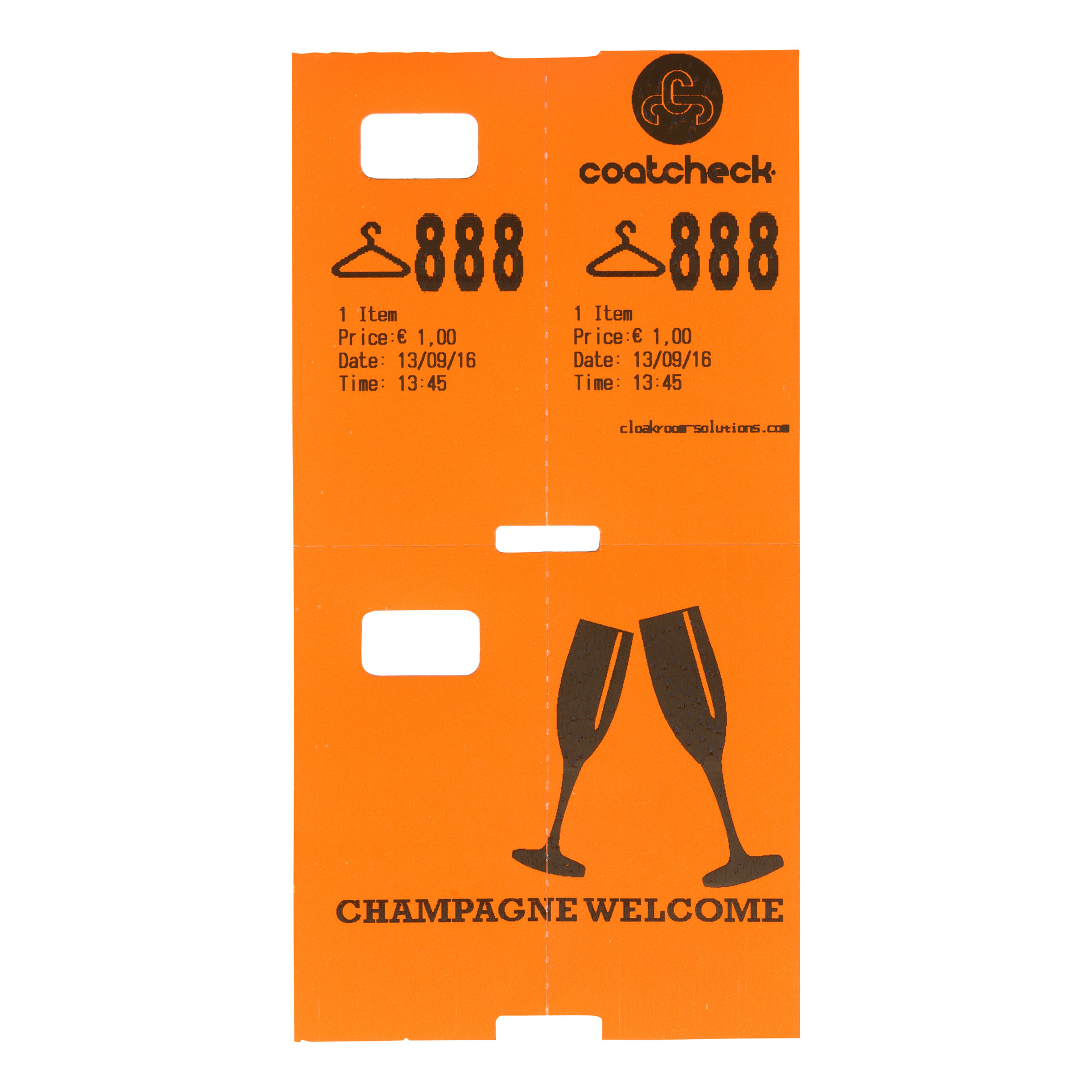 Vervang uw losse garderobenummers of plaatjes nu door deze ORANJE speciale printbare garderobe tickets. Deze Coatcheck garderobe tickets zijn uitsluitend geschikt voor de Coatcheck Orange en OneFive ticketprinter. Een ticket bestaat uit twee delen. Controleer uw omzet en organiseer uw garderobe.